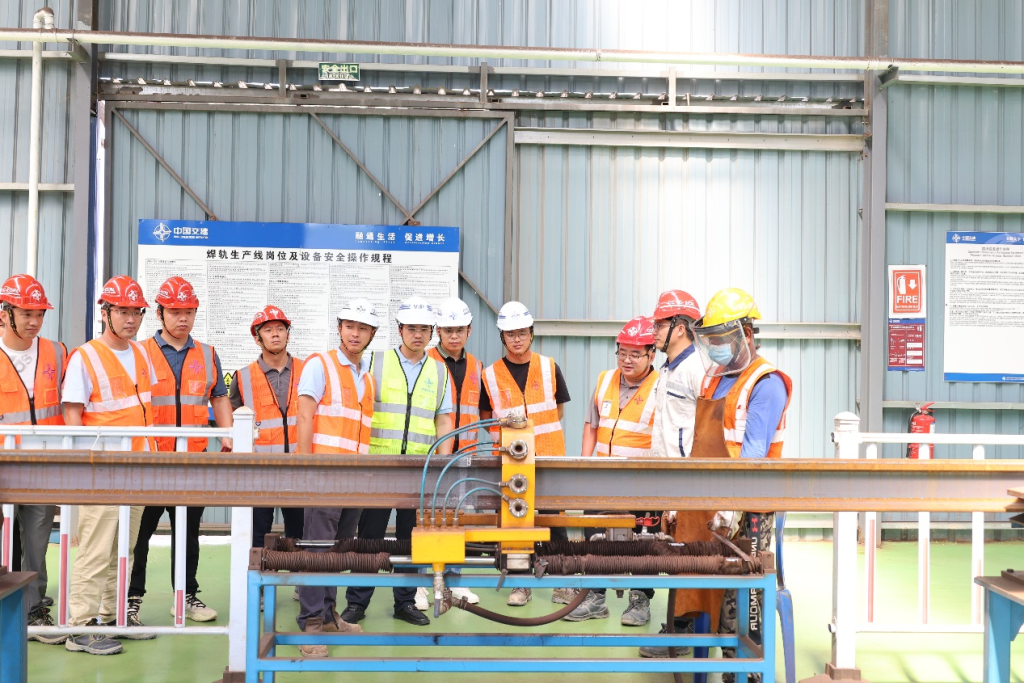 活动中,十分部负责人全面介绍了铺轨工程概况、实施管理策略、当前施工进展及与房建工程的界面情况。随后团组观摩了工程线智能调度系统操作,感受数字化技术为安全生产带来的提质增效。随后,一行人深入轨枕预制车间与长轨焊轨车间,了解生产工艺流程,认真观察每一道工序的精细操作,并就技术难点、质量把控要点进行深入探讨。观摩完毕后,十分部HSE部在铺轨基地安全培训中心为十二分部员工开展了工程线施工安全知识培训。期间,十分部还与十二分部组织开展了篮球友谊赛。