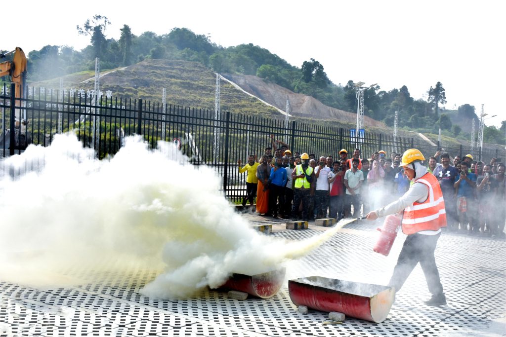 演练结束后,关单消防局对所有住在CLQ营地的人员开展消防安全培训,详细讲解了可能引发火灾的原因,预防措施,灭火器的使用等,在培训中组织参训人员进行灭火器使用实操演练,进一步提升了人员的消防安全意识和应急处置能力。