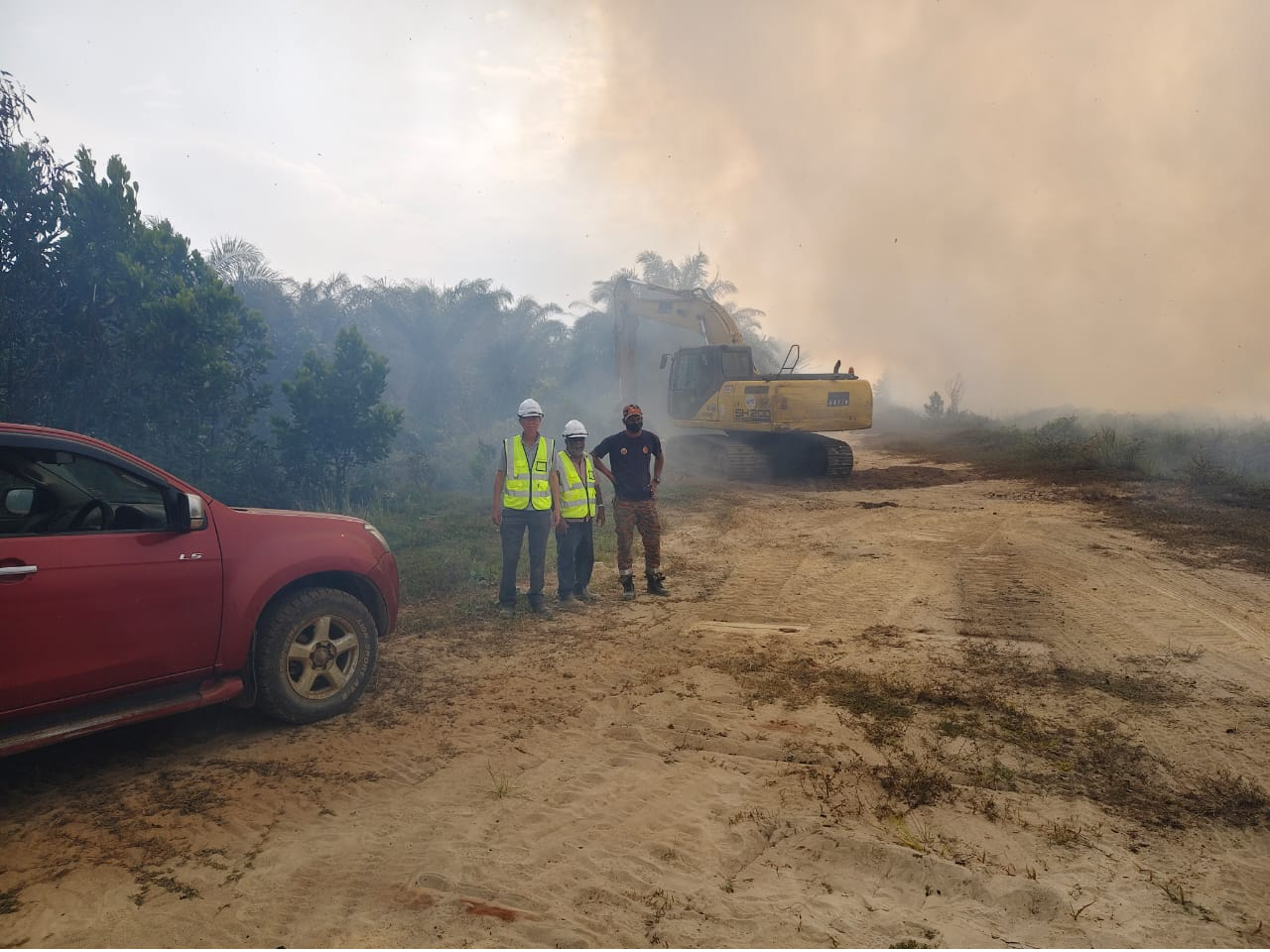 在接到求助信息后,项目部迅速响应,第一时间调派挖掘机及相关专业操作人员前往现场实施救援工作,并在消防局统一指挥下紧急挖出一条救援通道,协助消防人员顺利进入火场内部展开扑救,最终有效控制并扑灭火情。事后,彭亨州环境局与关丹市消防局高度赞扬项目的快速响应与社会担当,充分肯定了关丹国际物流园项目在助力当地防灾减灾、守护公共安全方面做出的积极贡献。