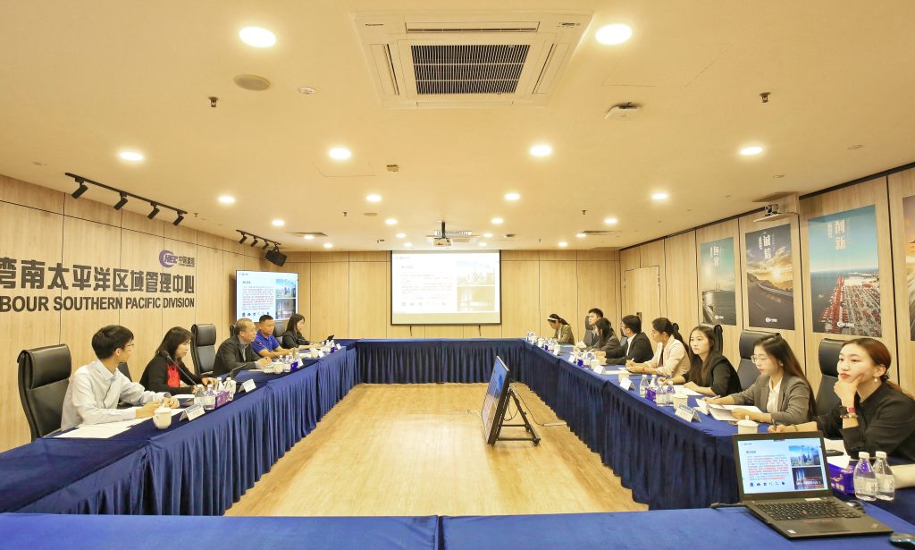 陈威对实践团的到访表示欢迎,介绍了南太区域管理中心发展历程、业务布局和“一带一路”重点项目建设情况,重点介绍了区域管理中心在推动中国技术、中国标准走出去和区域ESG建设方面的有关内容。王维佳对南太区域管理中心为此次实践调研活动给予的支持表示感谢,介绍了团队此行调研目的及预期成果,双方围绕重点项目运营与管理、国际传播与公共外交实践、属地化融合与人力资源管理、社会责任与ESG实践等议题开展了互动交流。