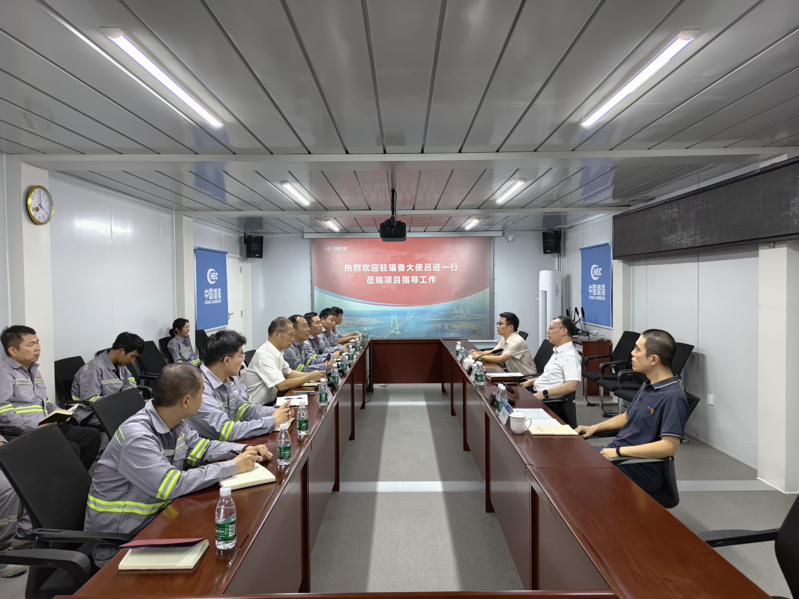 3月25日,中国驻瑙鲁大使吕进一行莅临援瑙鲁体育中心项目调研指导工作,中国驻瑙鲁大使馆及项目部相关负责人陪同调研。