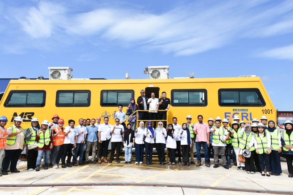 在行车指挥调度中心,调研团一行听取了十分部负责人对项目概况、施工进展等内容的汇报,添乘轨道车从关丹港站前往苏丹阿末沙城站,沿线感受轨道的平稳程度和施工质量。在长钢轨焊接生产车间,技术人员详细讲解了从