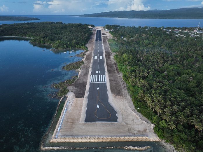 圣克鲁斯(拉塔)机场原有跑道长915米,最新跑道全长将增至1350米,共分两期建设,项目于2024年8月正式开工,此次投入使用的980米新跑道,标志着项目一期的完美竣工。所罗门群岛民用航空局官员对跑道质量给予高度评价,确认其表面摩擦力优异、标线符合规范、运行平稳安全,完全满足DASH-8机型起降标准,并称赞其为”安全可靠的高标准工程”。
