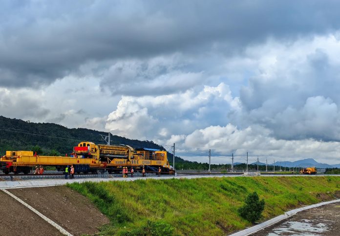 居茶支线是马来西亚东海岸铁路的重要组成部分,承担着联通位于居茶的马来西亚国家石油公司(PETRONAS)石油工业园区、提升区域货物集散能力、促进物流互通的重要使命。本段铺轨的启动,标志着支线工程全面进入轨道施工阶段,成为项目建设又一重大节点,为后续支线四电系统施工奠定了坚实基础。