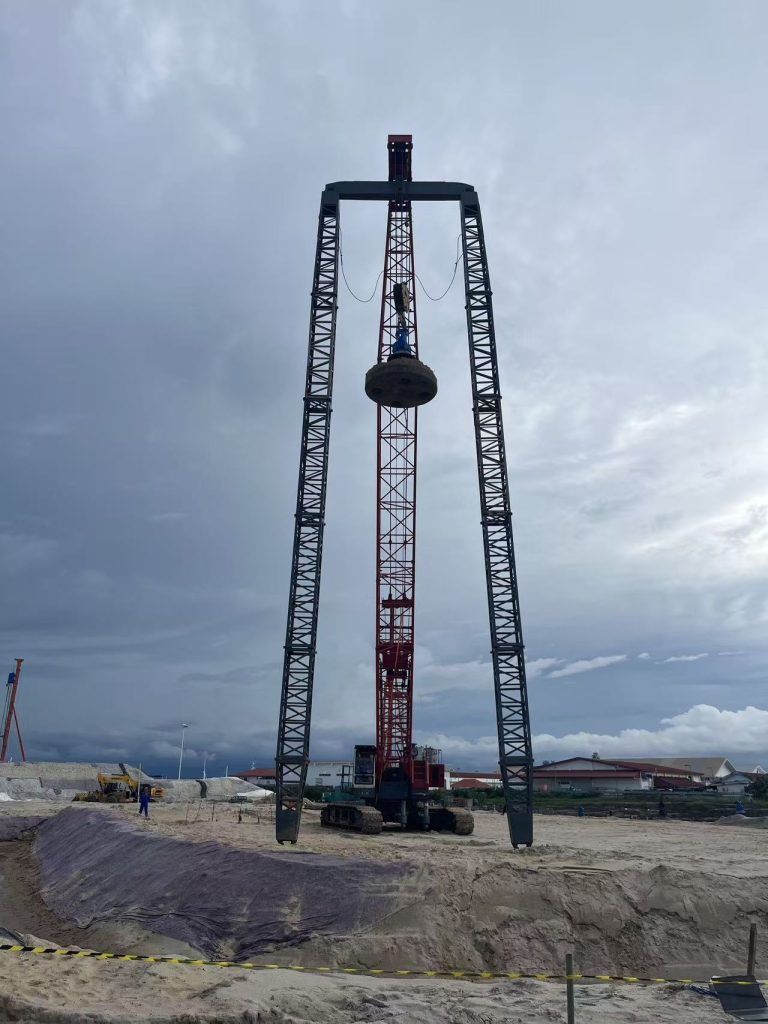 近日,文莱摩拉港改扩建工程强夯试夯作业正式启动,首台强夯机按既定参数完成首次夯击,标志着项目地基处理进入关键技术验证阶段。