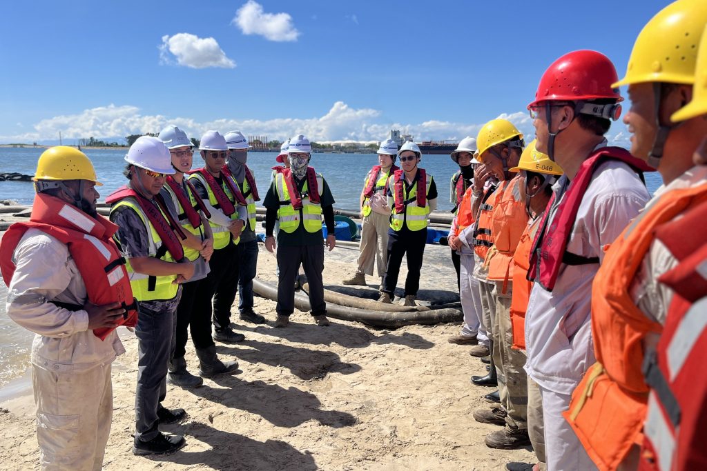 5月17日,文莱摩拉港改扩建项目部组织开展水上作业溺水应急救援安全演练。项目部、合作单位及临时堤堰施工班组共20余人参加。