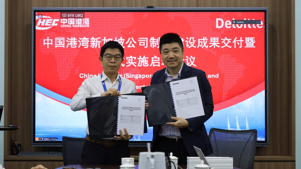 本次会议是新加坡公司属地实体化改革进入全面运行与持续优化新阶段的重要里程碑。会上,制度建设工作组汇报了今年6月底启动属地实体化方案以来的推进情况。在公司总部、南太区域管理中心指导及德勤咨询的支持下,公司已完成覆盖“5+4+N”架构的70条管理制度1.0版本,形成系统化属地管理体系。德勤咨询在会上对制度成果给予积极评价,并提出法规适配性和信息化建设等优化建议。随后,公司与德勤举行制度成果交付与签署仪式,宣布管理制度体系1.0版正式实施。