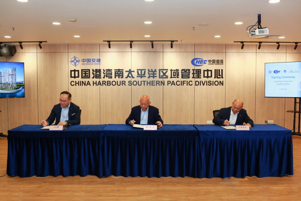 5月27日,中交集团董事长王彤宙出席马来西亚槟城超高层公寓项目签约仪式。鹏瑞利集团董事长潘锡源,IJM 地产 CEO 拿督Tony Ling Thou Lung,集团海外业务总监唐桥梁,中国港湾董事长白银战出席活动。