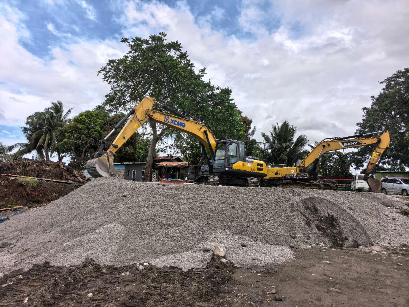 本次回填砂施工区域位于项目堆场,总面积约2.5公顷,设计采用中粗砂作为回填材料,下方回填砂与路垫层总量共计7.5万立方米。面对巴万地区砂源匮乏的实际困难,项目团队提前谋划,积极推进图纸、技术方案报批及砂源确定等准备工作,并与业主咨工保持密切沟通,全力拓展新砂源;经过多方努力,最终成功锁定符合项目需求的砂源,为现场施工的顺利开展奠定了坚实基础。