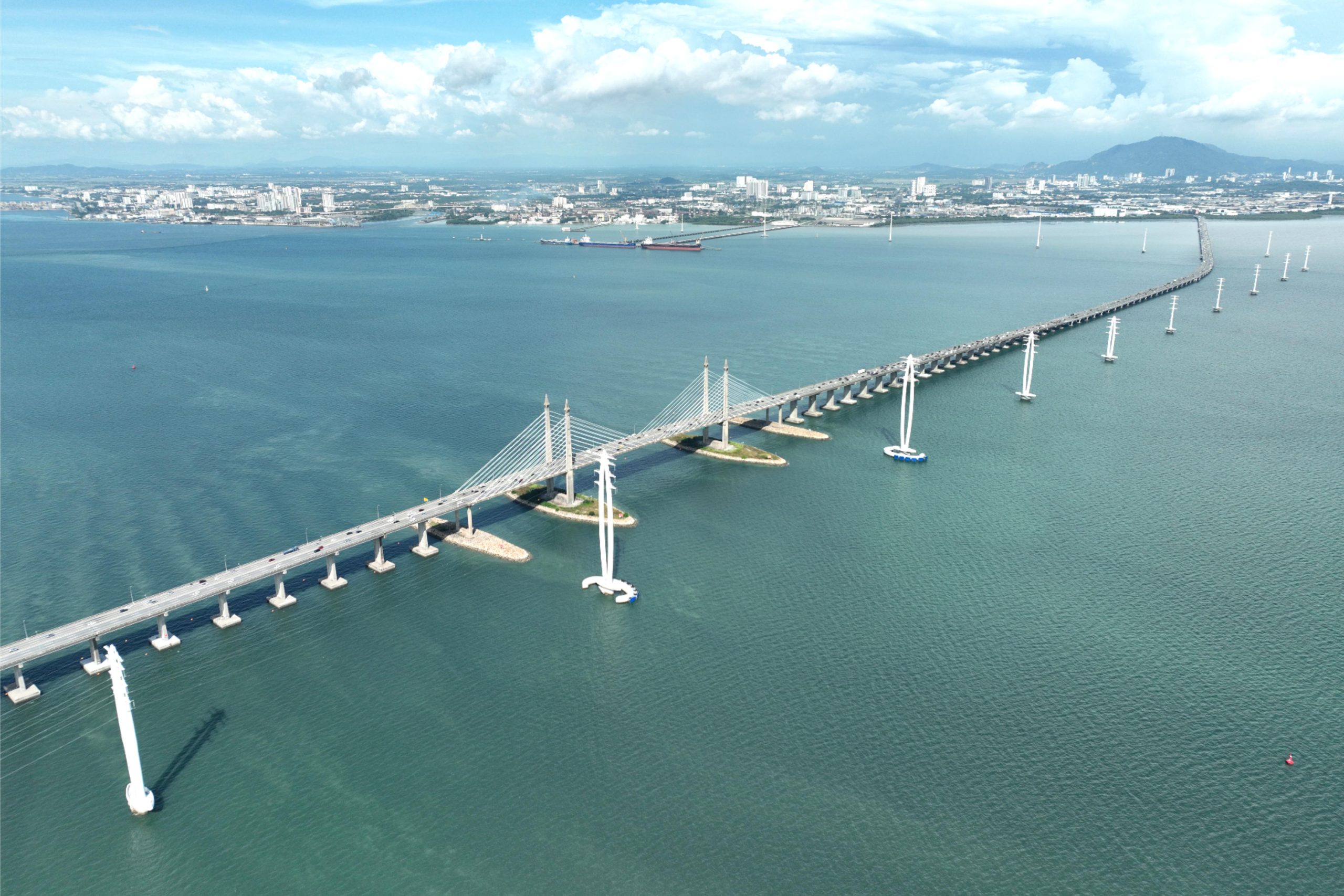 此次获奖是中国港湾在海外电力基础设施领域取得的又一重要成果,标志着公司在高电压跨海输电领域的设计施工能力和国际影响力再上新台阶。该项目由马来西亚国家能源公司投资。工程跨越槟威海峡,全长约8.5公里,共设31基杆塔,塔高约40~100米。项目中6基以槟榔果为灵感的双肢结构标志性杆塔首次成功应用于电力工程,成为槟城海上天际线上的新地标。面对复杂海洋环境与严苛技术的挑战,团队联合中外科研设计机构开展风洞试验和结构仿真,形成适应强风的优化方案;针对软弱地层,创新采用“试桩法+桩靴结构”工艺,提升桩基承载力;引入无人机展放导引绳及架线技术,提升施工安全与效率,累计安全工时超130万小时,零事故、零污染、零投诉,获CIDB五星级安全认证及多项国家级奖项。